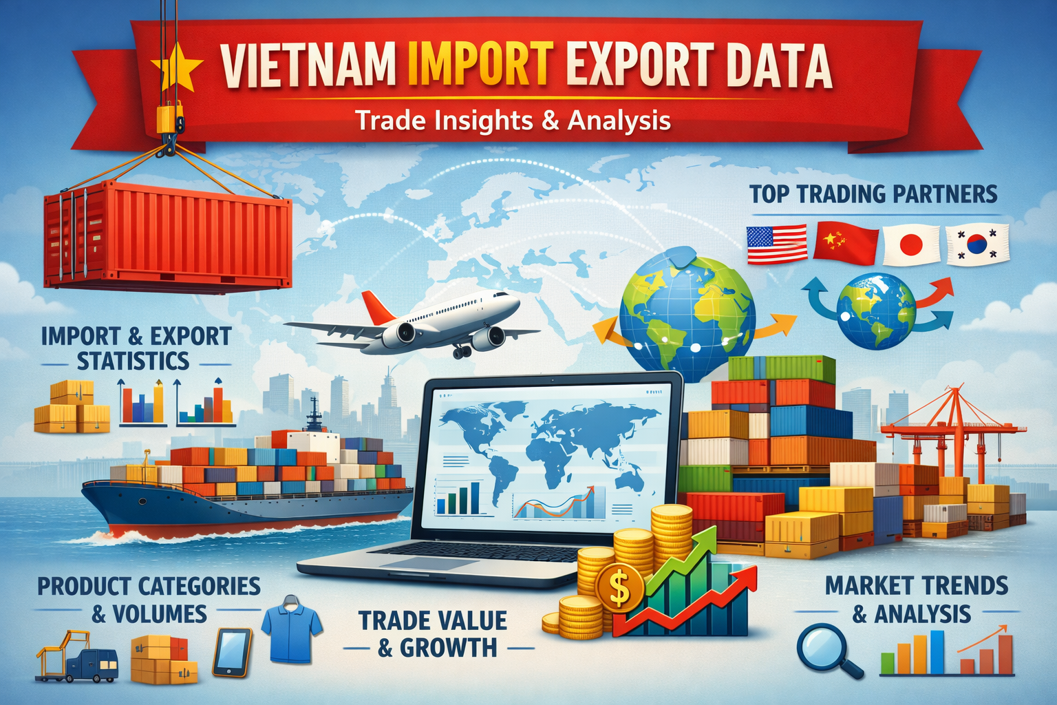 Vietnam import export data provides detailed information about the goods traded between Vietnam and other countries. It includes statistics on product categories, shipment volumes, trade values, partner countries, and market trends. This data helps businesses, traders, and researchers analyze Vietnam’s international trade performance, identify profitable markets, track competitors, and discover new import–export opportunities.